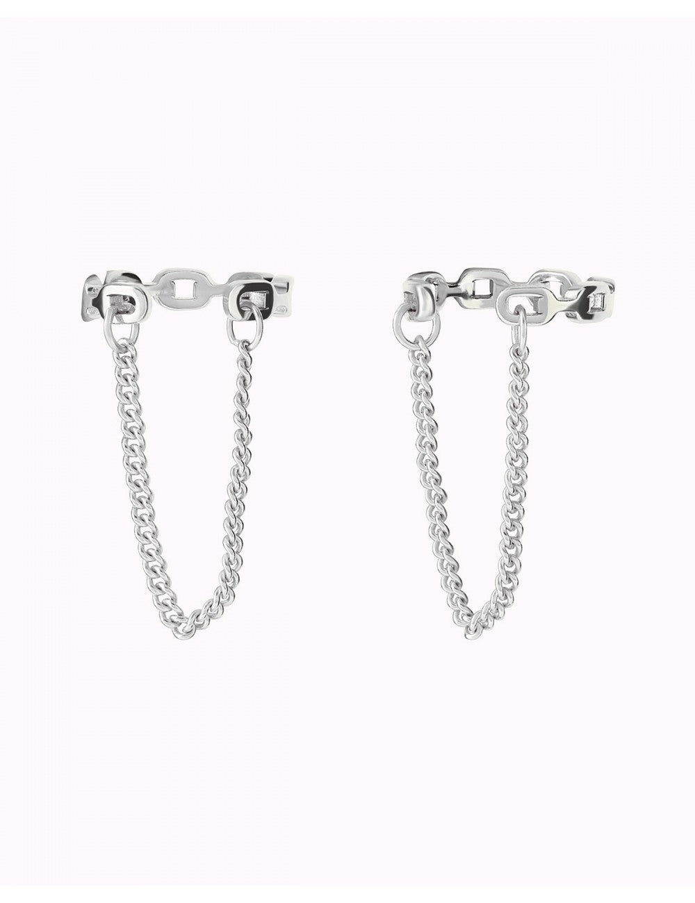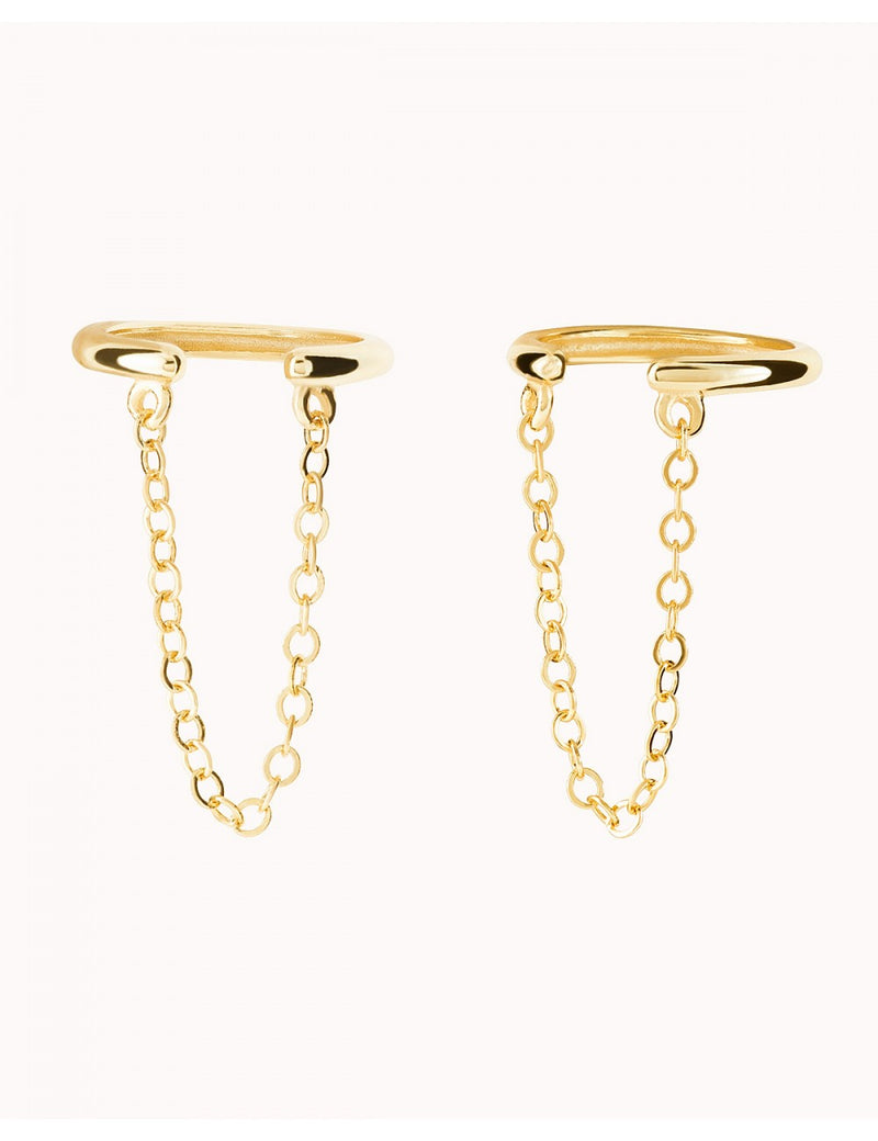 Pendientes conch ear cuff con circonitas y doble cadena colgante