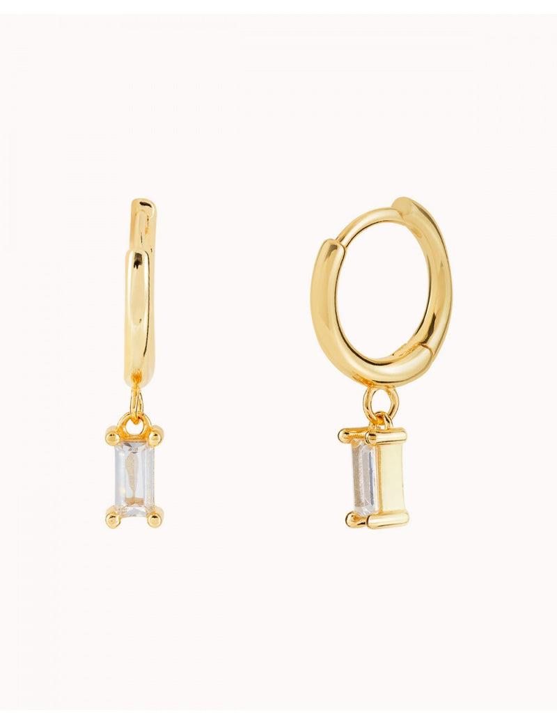 Pendientes de aro huggie con charm de circonita en talla baguette