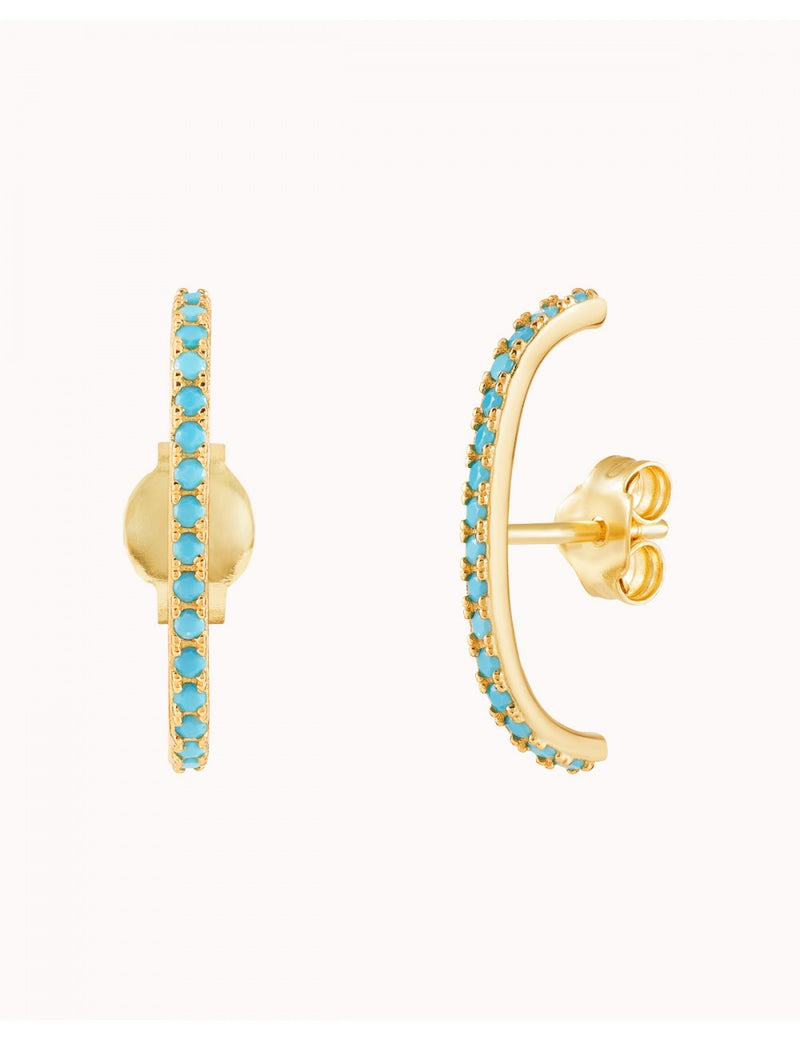 Pendientes stud ear lobe cuff con circonitas de color turquesa