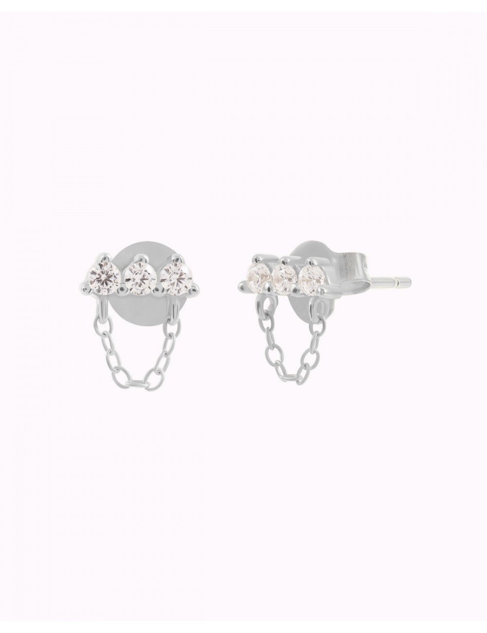 Pendientes stud con circonitas en 3 garras y cadena doble de bolas