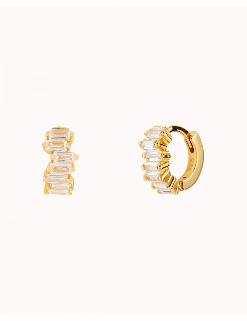 Misaligned Baguette CZ Huggie Hoop Earrings