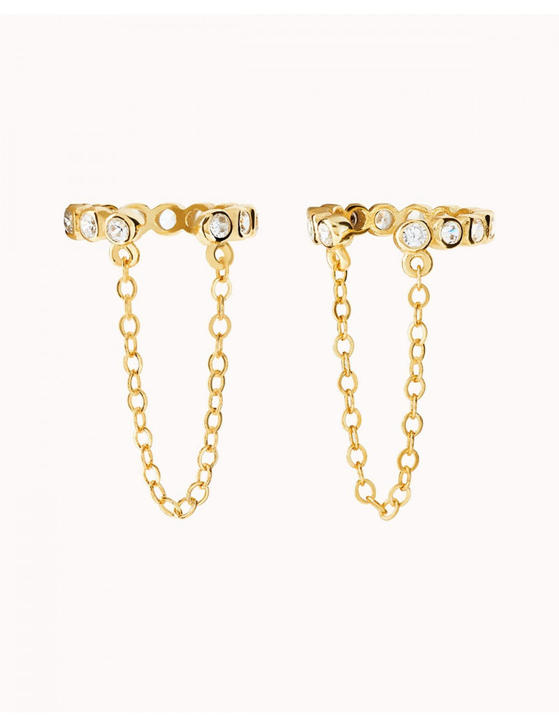 Bezel CZ Dangling Chain Conch Ear Cuff Earrings - Fake Piercing