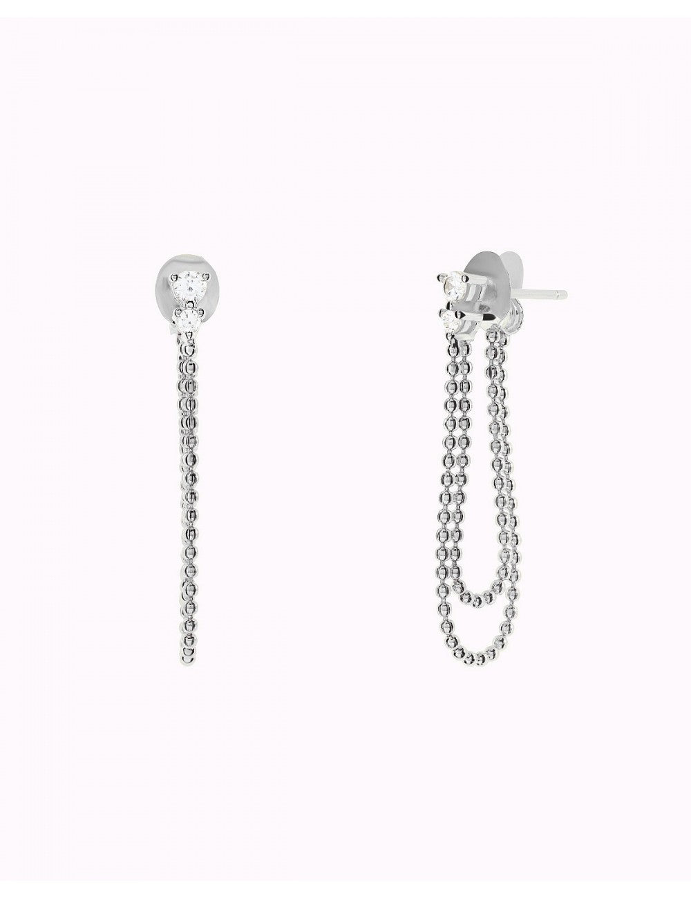 3 CZ Bar Shaped Stud Earrings With Dangling Chain